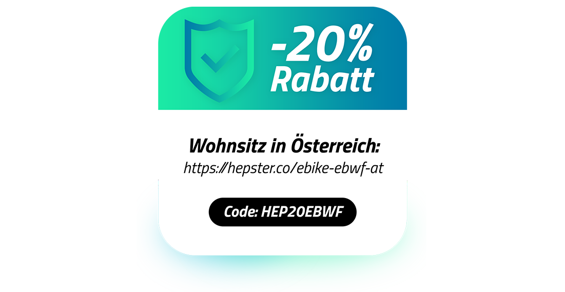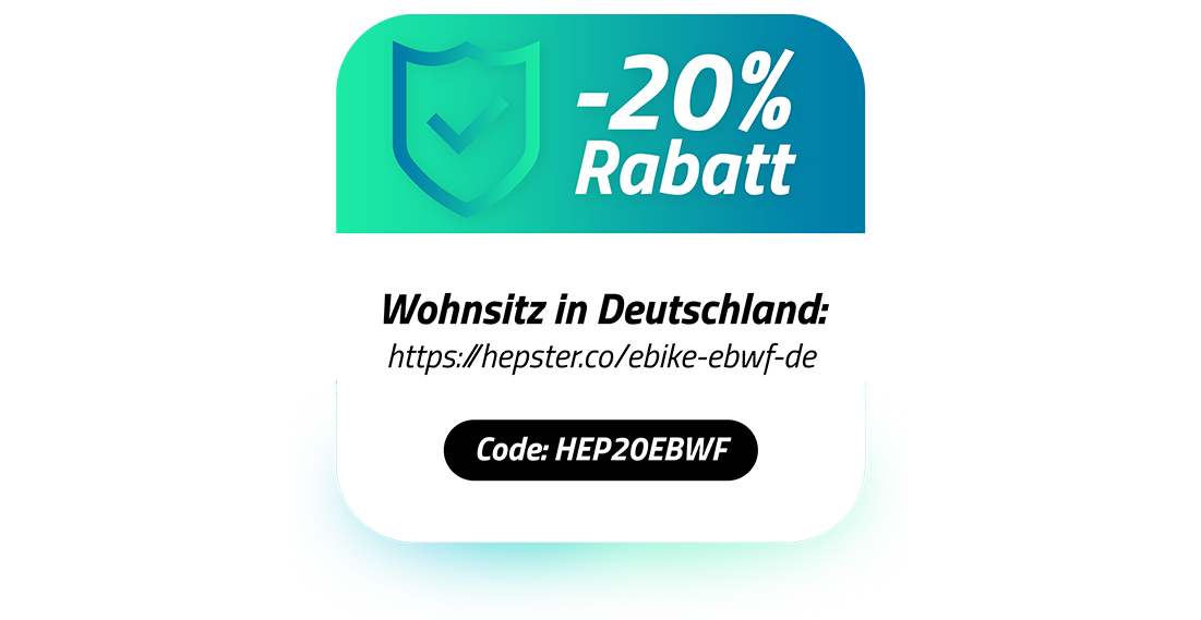 Mitglieder des E-Bike Weltverbandes erhalten EXKLUSIV 20 % Ermäßigung beim Abschluss einer E-Bike Versicherung unseres Partners MOINsure GmbH (unter der Marke hepster).